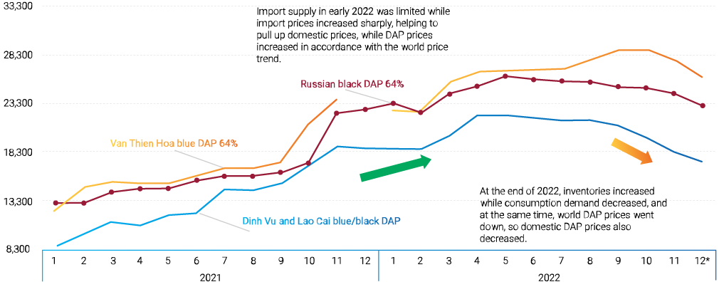 For urea, it is expected that fertilizer demand will recover in 2023 compared to that of 2022. The market mainly expects user demand to increase to compensate after a year of drastic reduction in all nutrients for plants; the possibility that the domestic market urea price will decrease due to the decrease in world urea price in 2023 will help people continue to increase investment in fertilizers to increase production productivity. However, it is likely that Vietnam’s fertilizer demand will remain lower than that of 2021. Specifically, AgroMonitor estimates that Vietnam’s fertilizer demand will increase by 10-18% compared to that of 2022 but will be about 8-13% lower than that of 2021. It is predicted that there is strong increase in DAP (28-46%), urea (12-16%), and MOP (15-26%); lower increase of other fertilizers is expected (7-14% for NPK, 7-11% for SA, etc.).