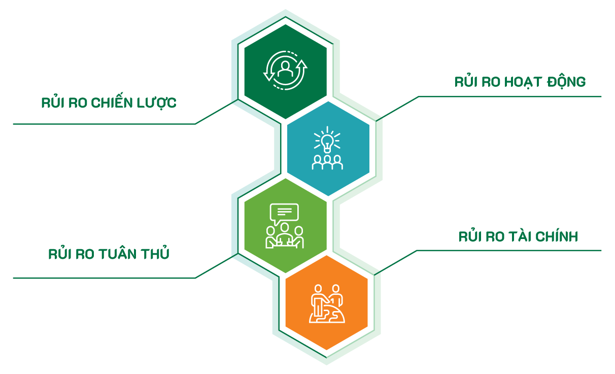 Trong năm vừa qua, Hội đồng Quản trị Công ty đã ban hành cập nhật lại Quy chế quản trị rủi ro, đồng thời cập nhật lại Tuyên ngôn về Khẩu vị rủi ro, Mức độ chấp nhận rủi ro và Thước đo rủi ro. Trên cơ sở đó, Tổng Giám đốc ban hành lại Quy trình quản trị rủi ro. Ban Điều hành rà soát, đánh giá, nhận diện và ban hành Hồ sơ rủi ro cấp Công ty và Hồ sơ rủi ro cấp Đơn vị, theo đó giúp nhận diện từng nguyên nhân gốc rễ dẫn tới rủi ro, đề ra các giải pháp ứng phó và hành động chi tiết, phân công các đơn vị đầu mối và đơn vị phối hợp nhằm đảm bảo hiệu quả mục tiêu kiểm soát rủi ro.