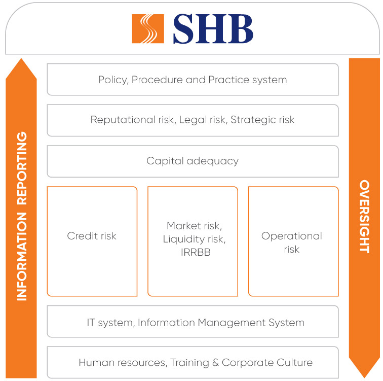 SHB establishes a risk management framework to ensure a complete system of policies, regulations, procedures and guidelines to run the Bank’s operation in line with the business strategy and risk management objectives. Material risks are identified, measured and controlled while maintaining a satisfactory capital adequacy ratio commensurate with the Bank’s risk profile.