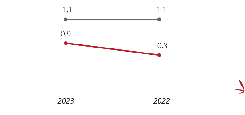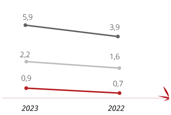 và Hệ số Nợ trên Vốn chủ sở hữu được duy trì ổn định như năm 2022.