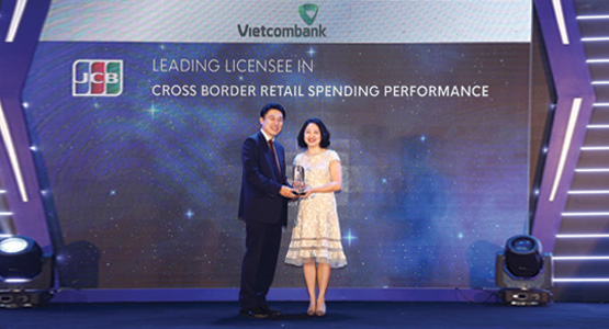 Tại Hội nghị thường niên năm 2019 của Tổ chức thẻ quốc tế JCB diễn ra tại Vũng Tàu, JCB đã vinh danh Vietcombank tại 4 hạng mục giải thưởng quan trọng bao gồm: Ngân hàng dẫn đầu về Tổng Doanh số sử dụng thẻ JCB (Leading Licensee in Total Retail Spending Volume), Ngân hàng dẫn đầu về Tổng doanh số thanh toán thẻ JCB (Leading Licensee in Merchant Sales), Ngân hàng dẫn đầu về việc sử dụng thẻ JCB ở nước ngoài (Leading Licensee in Cross Border Retail Spending Performance), Ngân hàng dẫn đầu về sản phẩm mới (Leading Licensee in New Product).
