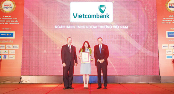 Tháng 8/2019, tại Hà Nội, Công ty Cổ phần Báo cáo đánh giá Việt Nam (Vietnam Report) tổ chức Lễ tôn vinh Top 10 Ngân hàng thương mại Việt Nam uy tín và Top 10 Doanh nghiệp niêm yết uy tín năm 2019. Vietcombank tiếp tục được bình chọn ở vị trí dẫn đầu Top 10 Ngân hàng thương mại Việt Nam uy tín. Đây là năm thứ 3 liên tiếp Vietcombank vinh dự nhận được danh hiệu này. Bảng xếp hạng là kết quả nghiên cứu độc lập và khách quan của Vietnam Report được công bố thường niên từ năm 2016, dựa trên phương pháp Media Coding (mã hóa dữ liệu báo chí) trên truyền thông, kết hợp nghiên cứu chuyên sâu các ngành trọng điểm, có tiềm năng tăng trưởng cao.