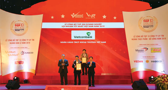 Tháng 11/2019, Công ty Cổ phần Báo cáo đánh giá Việt Nam (Vietnam Report) phối hợp cùng Báo điện tử VietNamNet tổ chức Lễ Công bố 500 doanh nghiệp lợi nhuận tốt nhất Việt Nam 2019. Với kết quả kinh doanh ấn tượng, dẫn đầu ngành Ngân hàng về quy mô lợi nhuận, Vietcombank xuất sắc có mặt trong Top 10 doanh nghiệp lợi nhuận lớn nhất Việt Nam của bảng xếp hạng Profit 500 2019 và tiếp tục duy trì vị thế dẫn đầu các ngân hàng thuộc bảng xếp hạng.